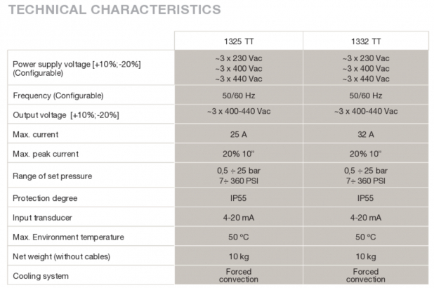 nuovo inverter TRIFASE per elettropompe fino a 32 amp. completo di trasduttore di pressione